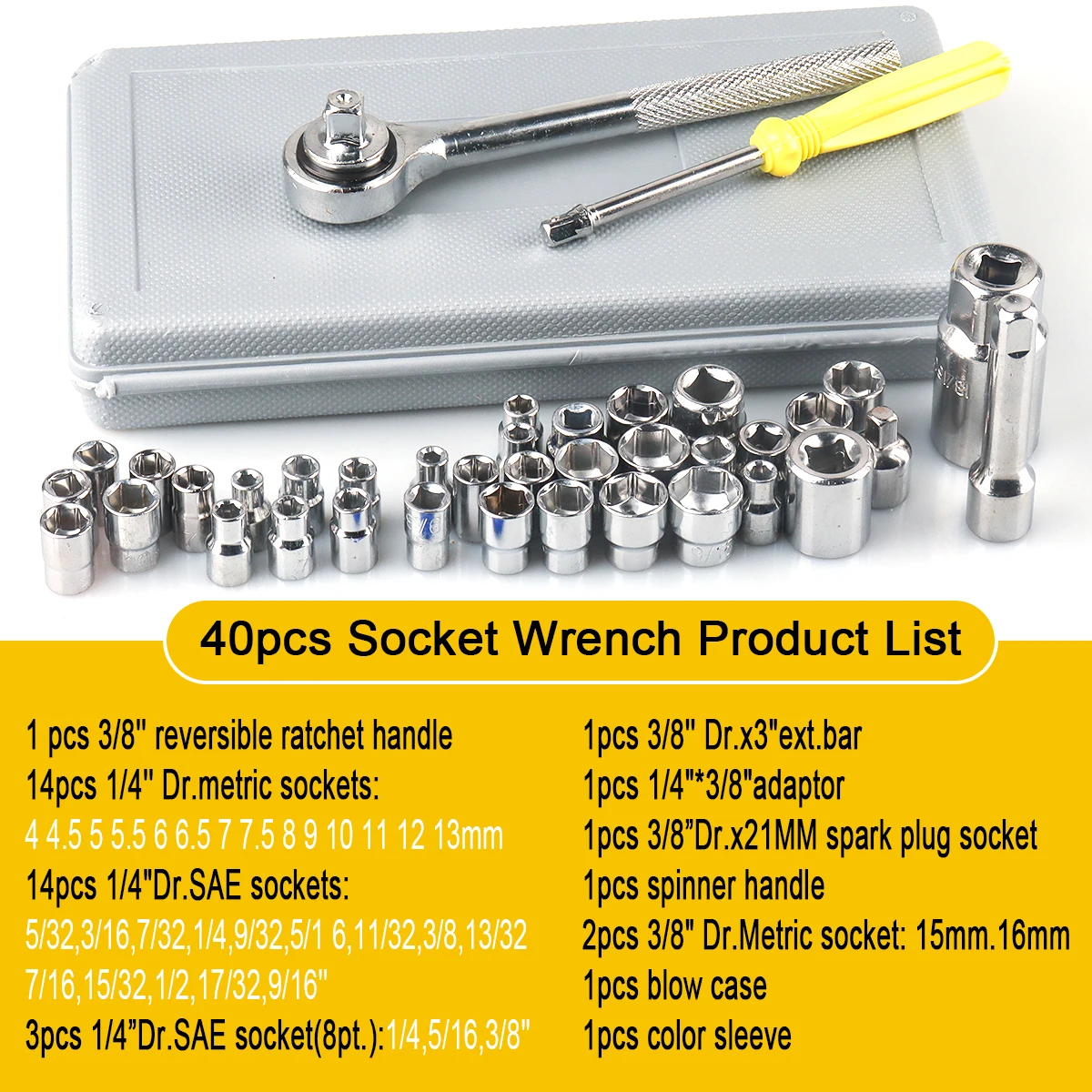 28 Pieces 1/4 series sleeve: 4,4.5, 5, 5.5, 6, 6.5, 7, 7.5, 8, 9, 10, 11, 12, 13.0MM