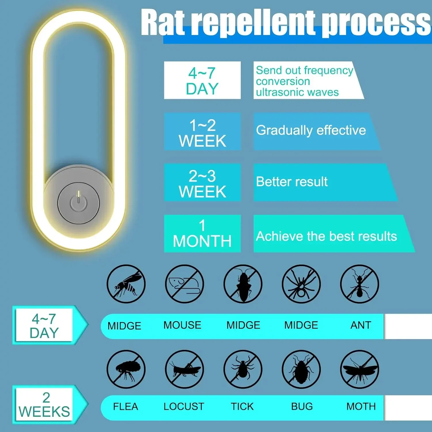 With ultra-low power consumption (≤1W) and silent operation, it works continuously without disturbing sleep. The ultrasonic frequency changes automatically, improving effectiveness across different insects while remaining harmless to humans and pets like cats and dogs.