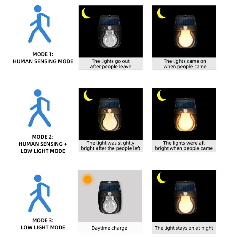 Versatile Lighting Modes:With 3 working modes, this solar lamp offers customizable brightness for various outdoor scenarios.