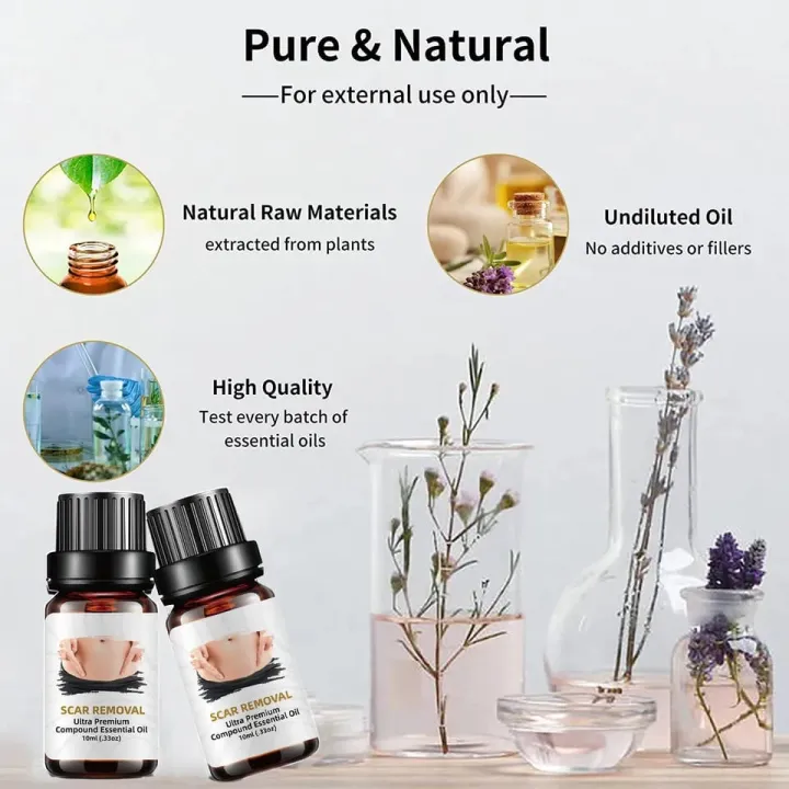 The 10ml Scar Removal Essential Oil is an ultra-premium blend crafted to assist in diminishing the visibility of scars resulting from acne, burns, surgical procedures, and other skin injuries. This specialized formula combines natural essential oils renowned for their therapeutic benefits, aiming to support skin regeneration and enhance overall skin texture.