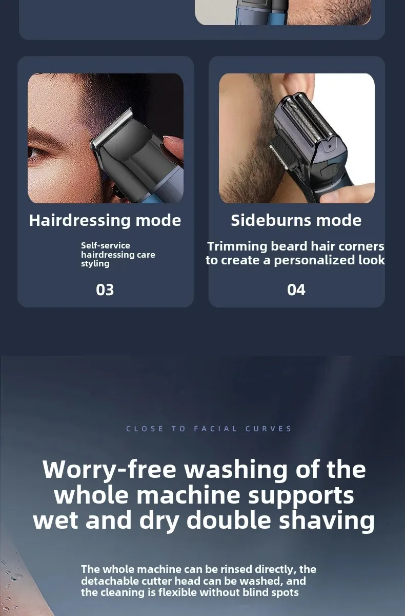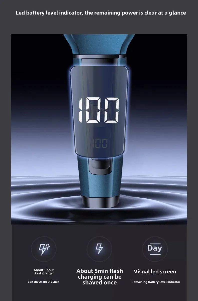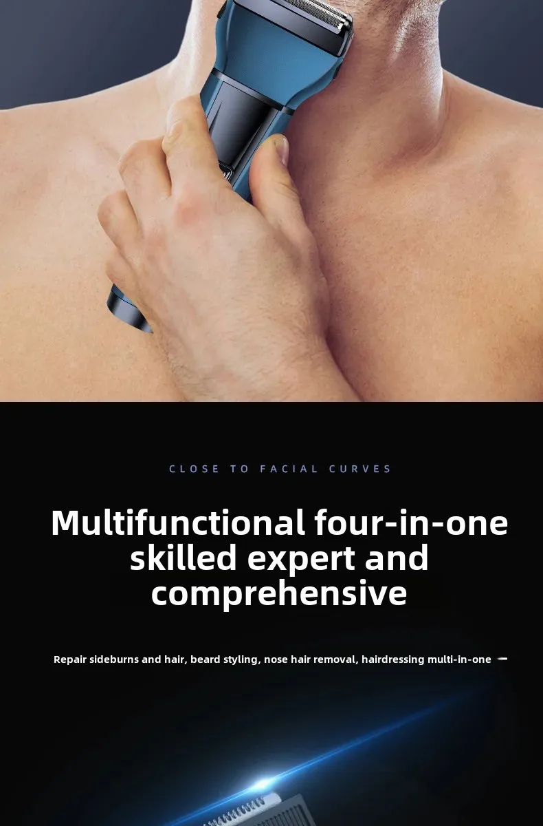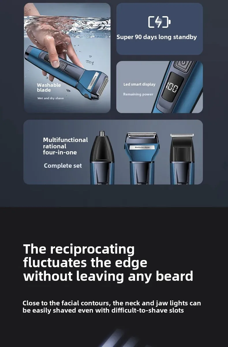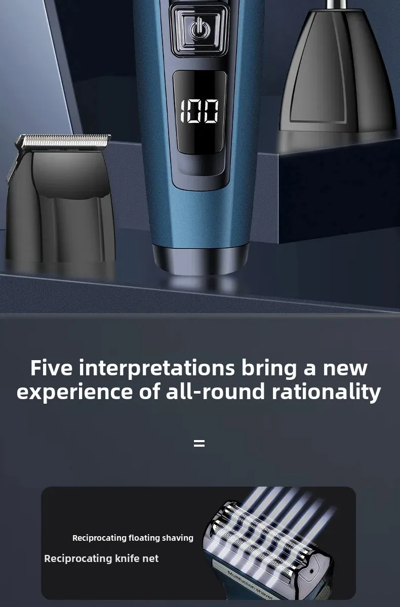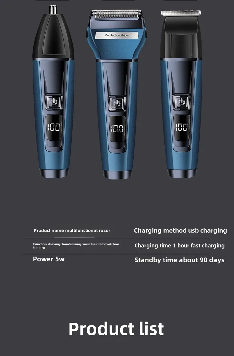 Experience effortless grooming with the Three-in-One Electric Shaver, a multifunctional tool designed for precision, comfort, and convenience. This advanced grooming device combines shaving, trimming, and display features in one sleek package. The ergonomic design and digital display make it easy to use and maintain, while the powerful reciprocating blade technology ensures a close, irritation-free shave every time. Perfect for both home and travel, this shaver is the ultimate grooming essential for modern men.